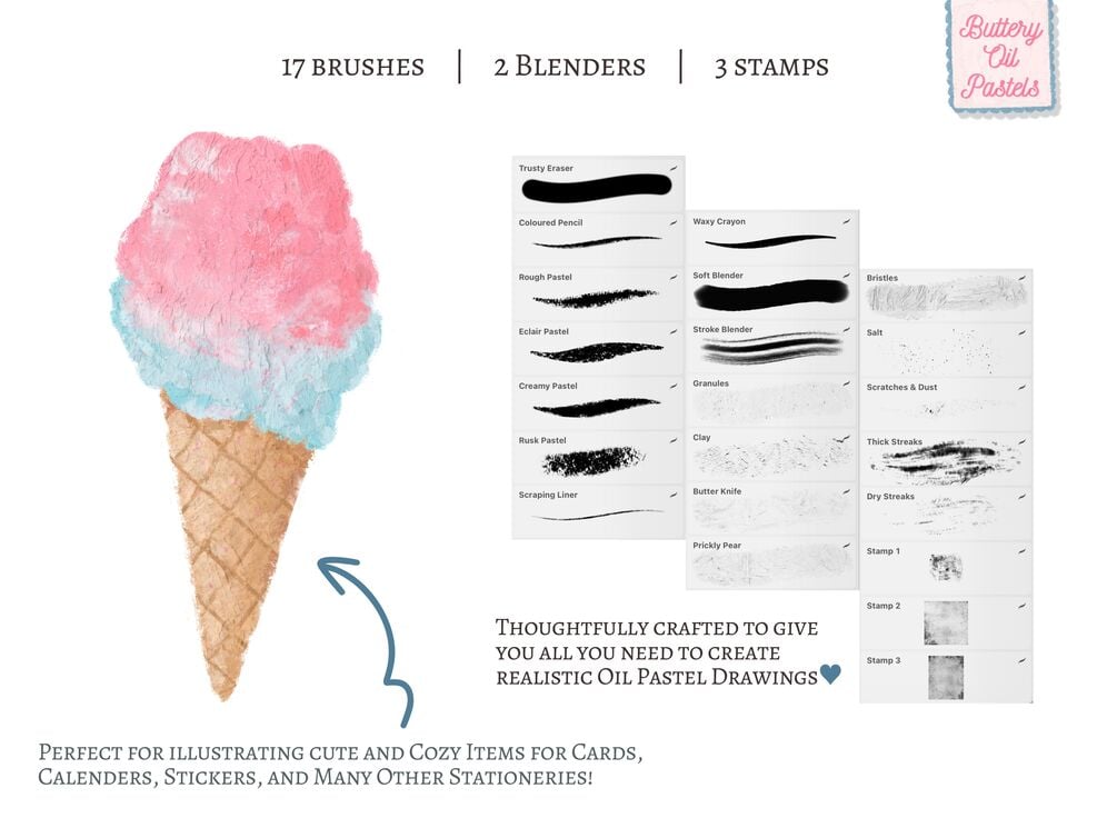 Add ultimate realism to your creations by applying authentic textures and stamps to your paintings! I spent months creating these brushes as I really wanted to mimic that creamy (impasto) texture of real oil pastel crayons.
